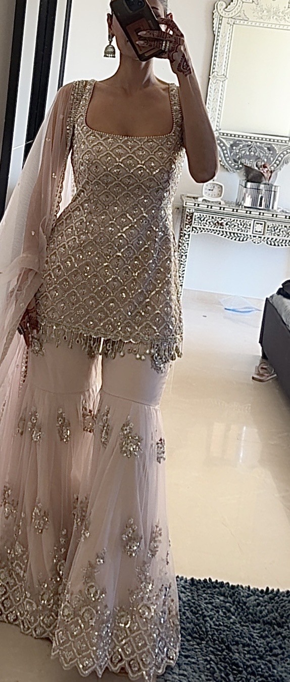 Kameez • Heavy pearl and sequins work on front and back with mirror work tassels.